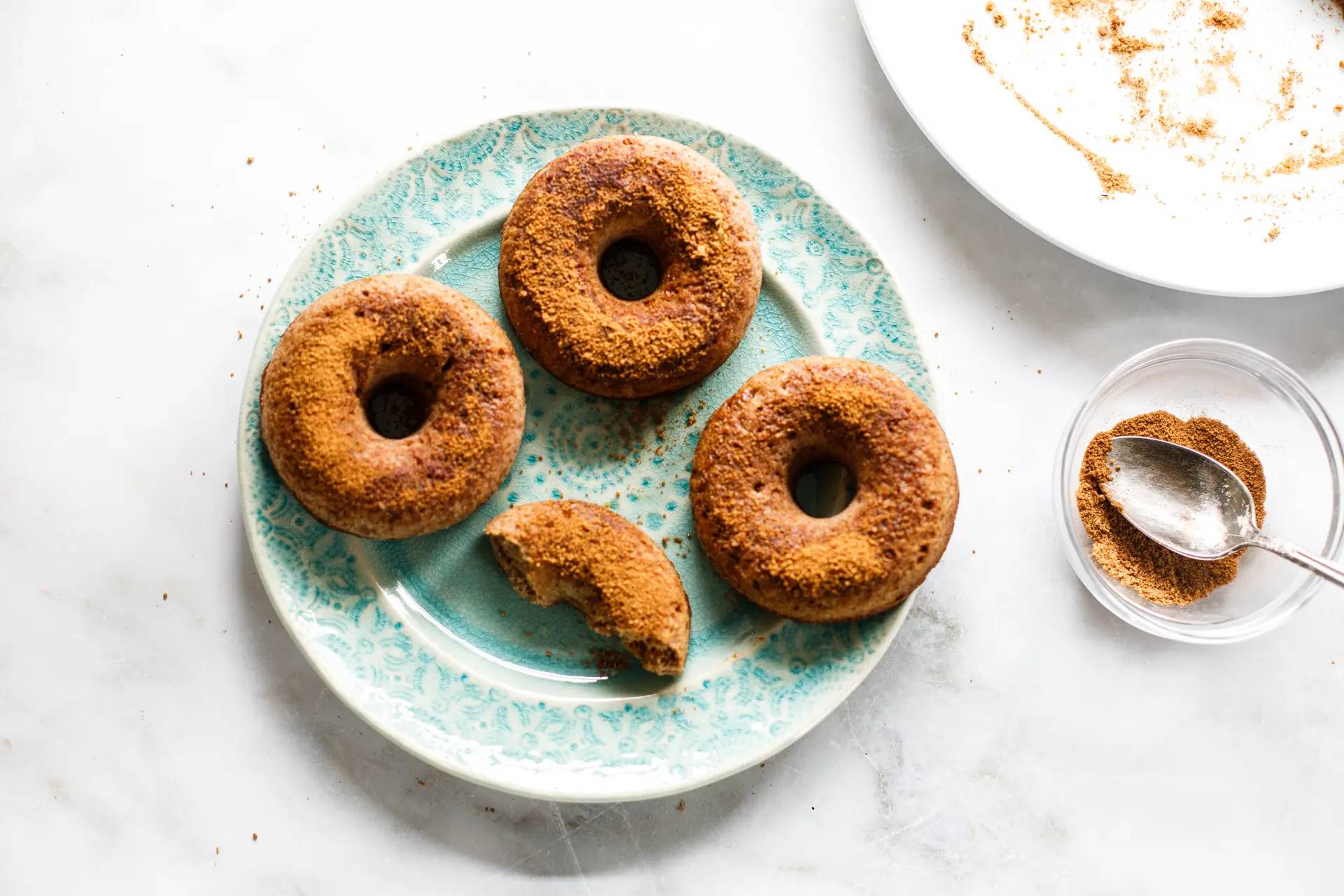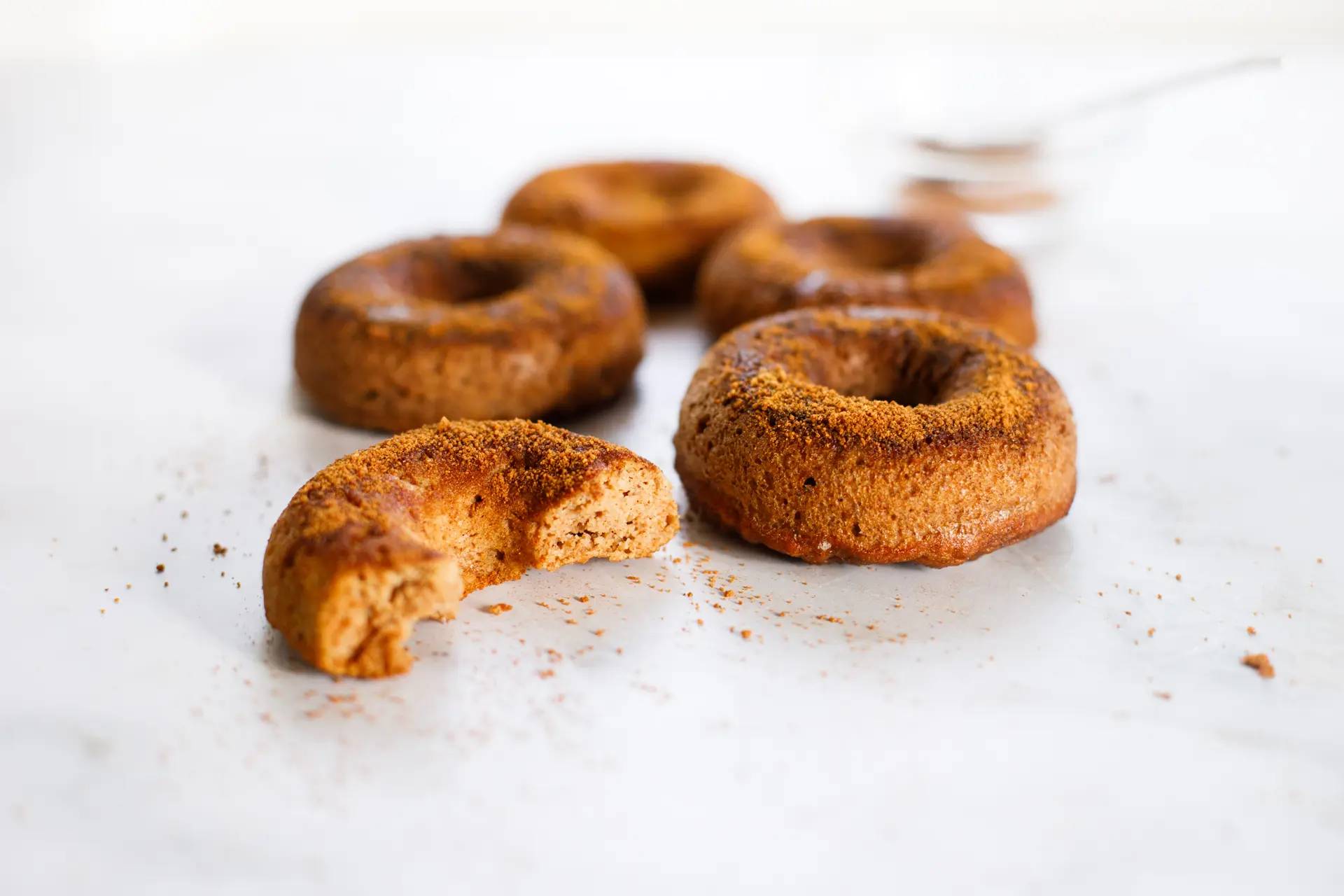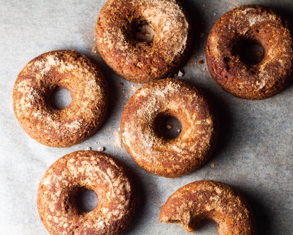 This apple cider donut recipe made with coconut flour is my latest favorite baked donut. The texture is light and airy, with a perfect cake bite. And the combination of applesauce, reduced cider, spices, and vanilla extract hits the best scent and flavor notes. And it's nut-free.